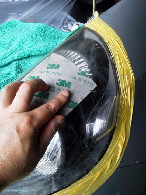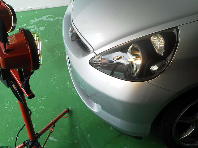 運転席側は黄ばみが強かったので今回は軽度なスポンジ磨きと耐水ペーパー、ポリッシャーで磨きました。