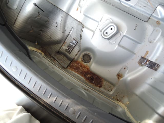 このような場合はラゲッジスペースの内装から流れて車体を汚している場合が多い。