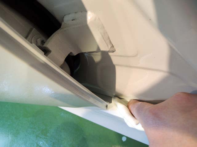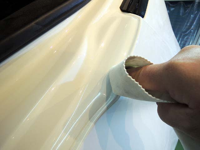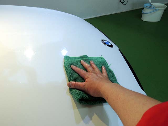 撥水力と艶を更に出すため、強化剤を使用してフッ素を更に1工程コーティングします。