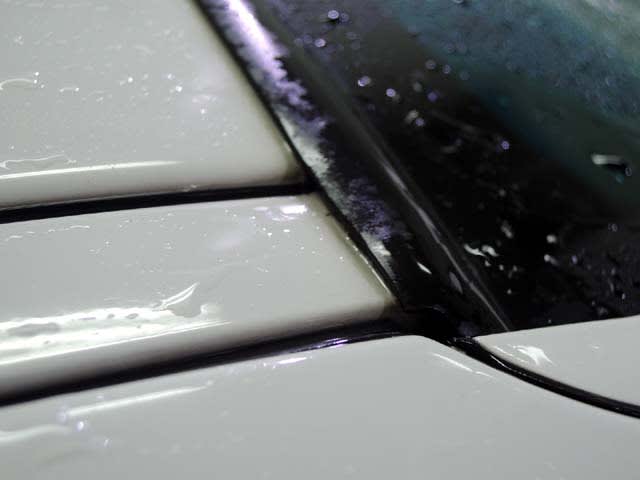 ポリッシャーの高回転とシリコンポリマーの作用で水垢を除去しながら艶を出していきます。