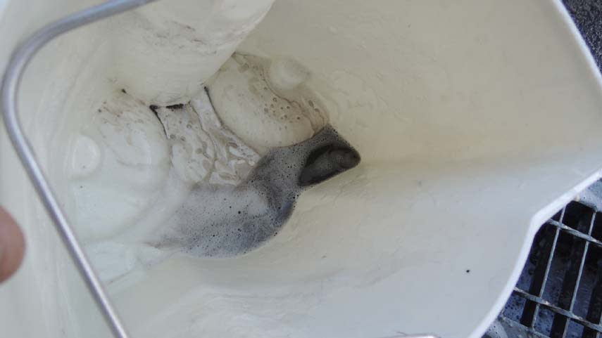 専用クリーナーで汚れを浮かせて取りましたが、白っぽくなってましたので水性艶出しを行いました。かなり回復しています。