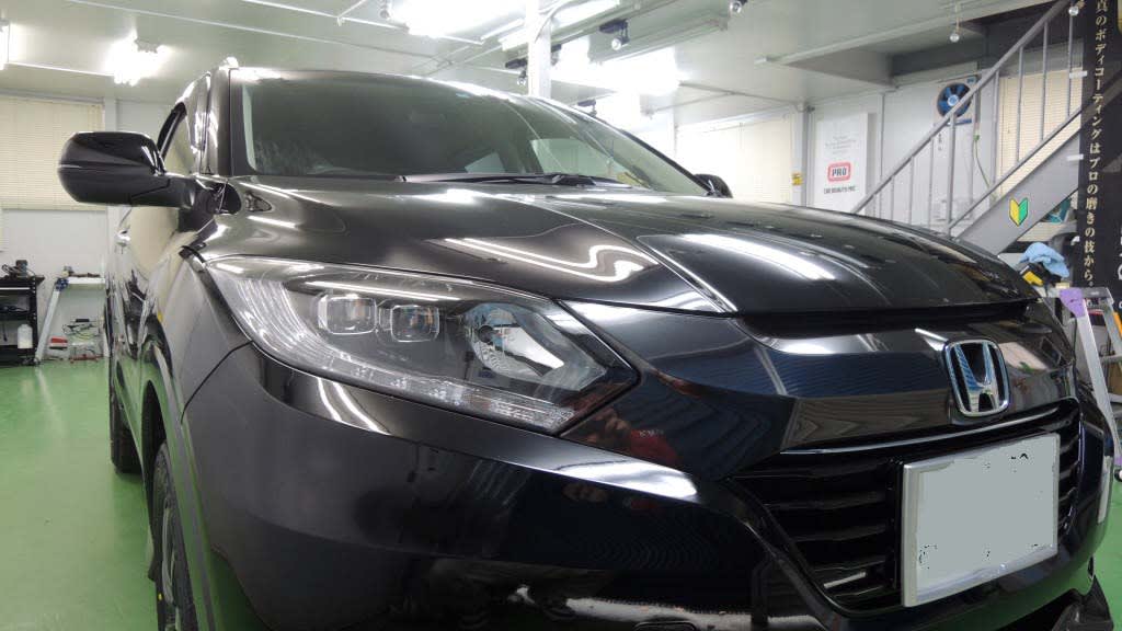 2014/11 ホンダ・ヴェゼルハイブリット(クリスタルブラック・パール)PX-V300(親水・防汚性ガラスコーティング)札幌市お車のコーティング