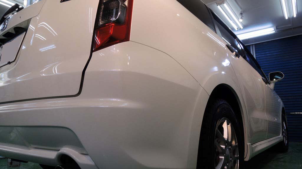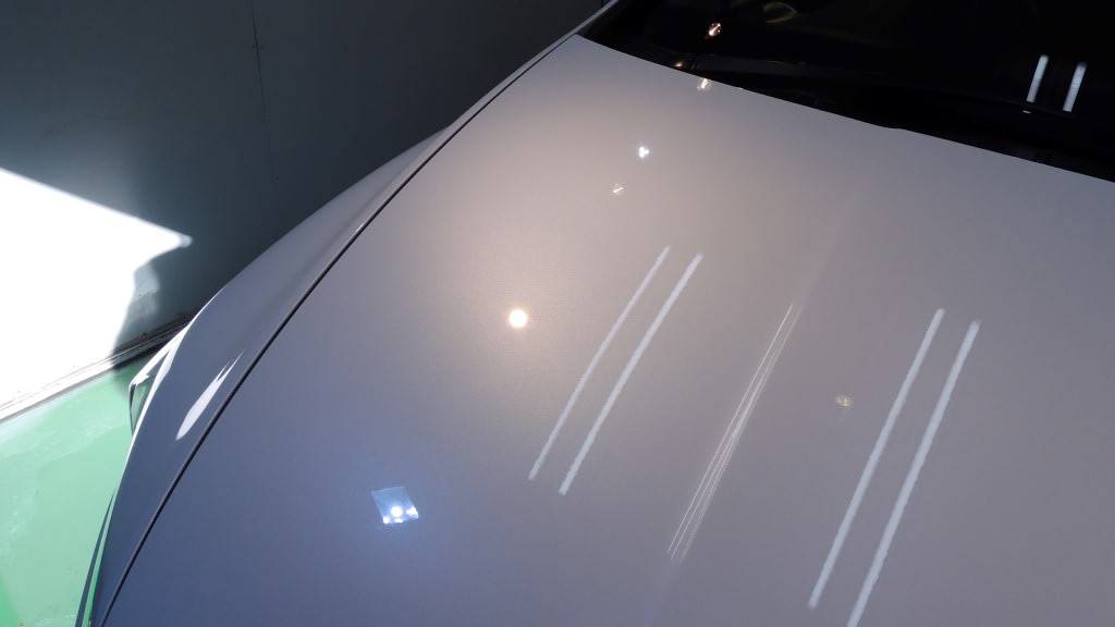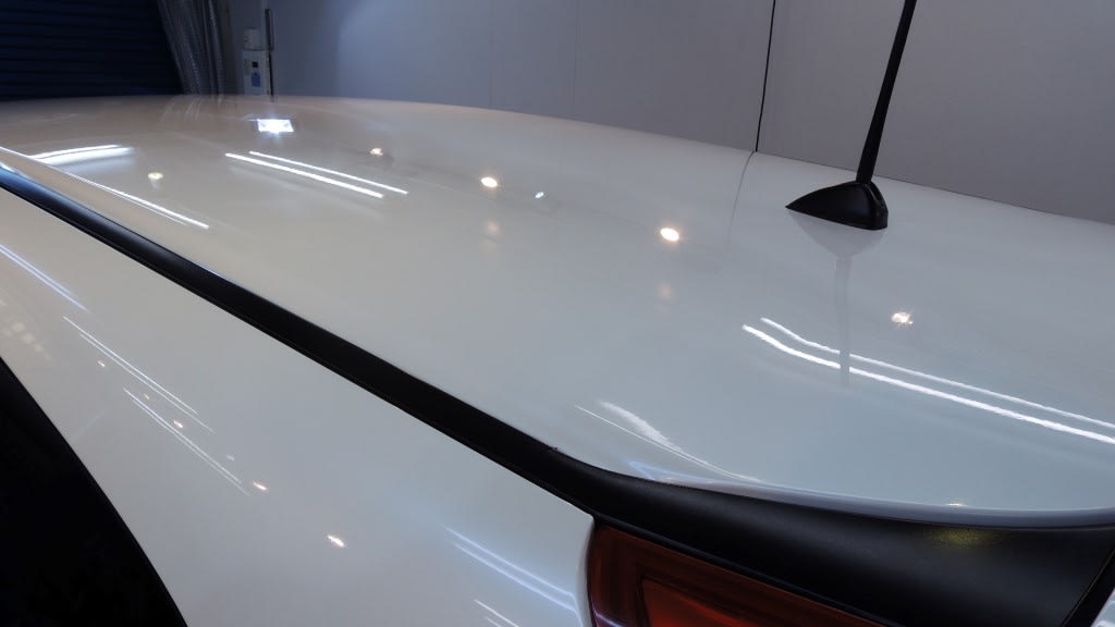 淡色車は洗車キズが目立ち難いですが、ミガキを入れることでキズを除去しクモリが取れる事によって新車以上の光沢が発揮されます。