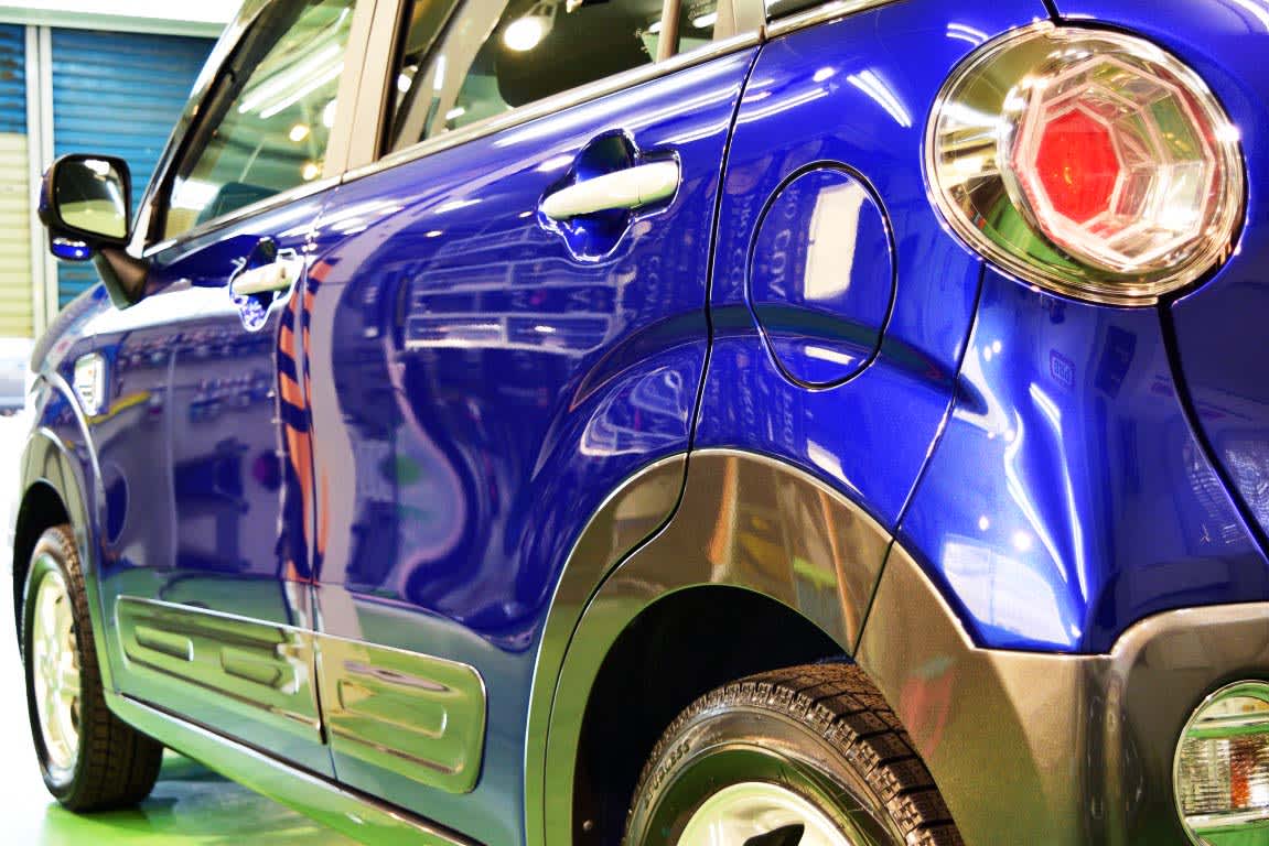 ディープブルークリスタルマイカは発色が良く美しく見えますが、新車用研磨 LEVEL2を行い更なる光沢を演出いたします。