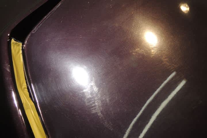 プレスラインや角などの弱い場所は研磨により塗装が薄くなる事と剥げてしまう場合があります。