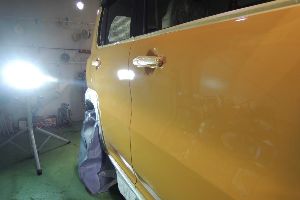 プレスラインや角などの弱い場所は研磨により塗装が薄くなる事と剥げてしまう場合があります。