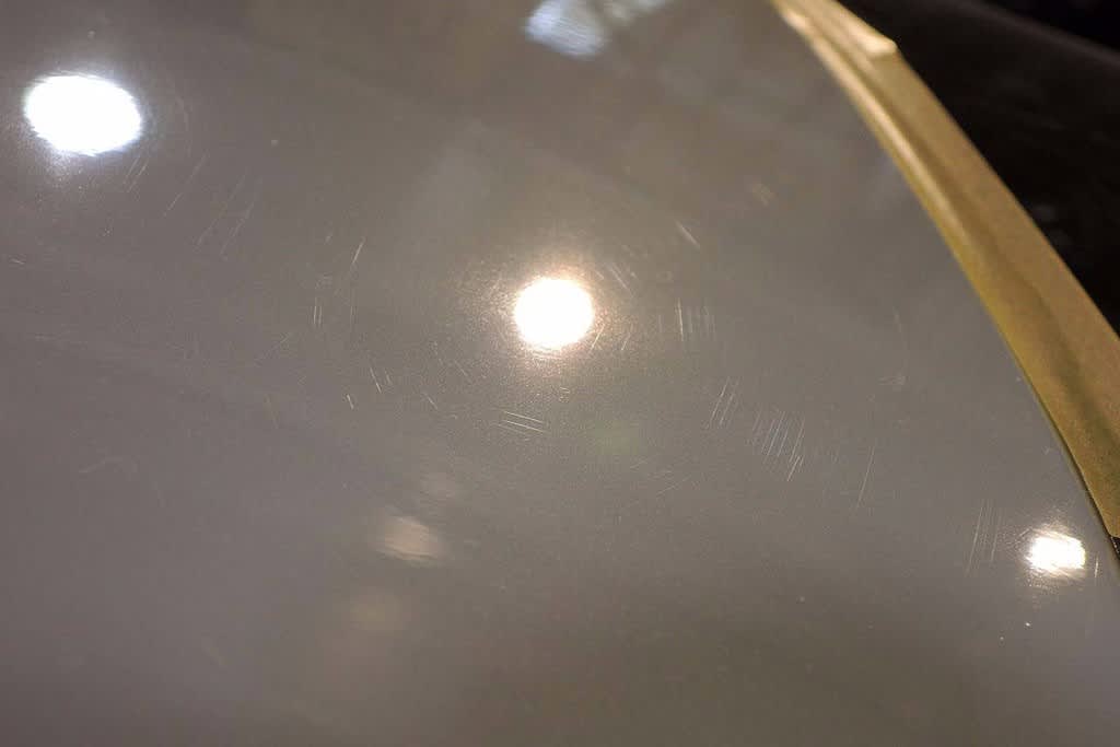 プレスラインや角などの弱い場所は研磨により塗装が薄くなる事と剥げてしまう場合があります。