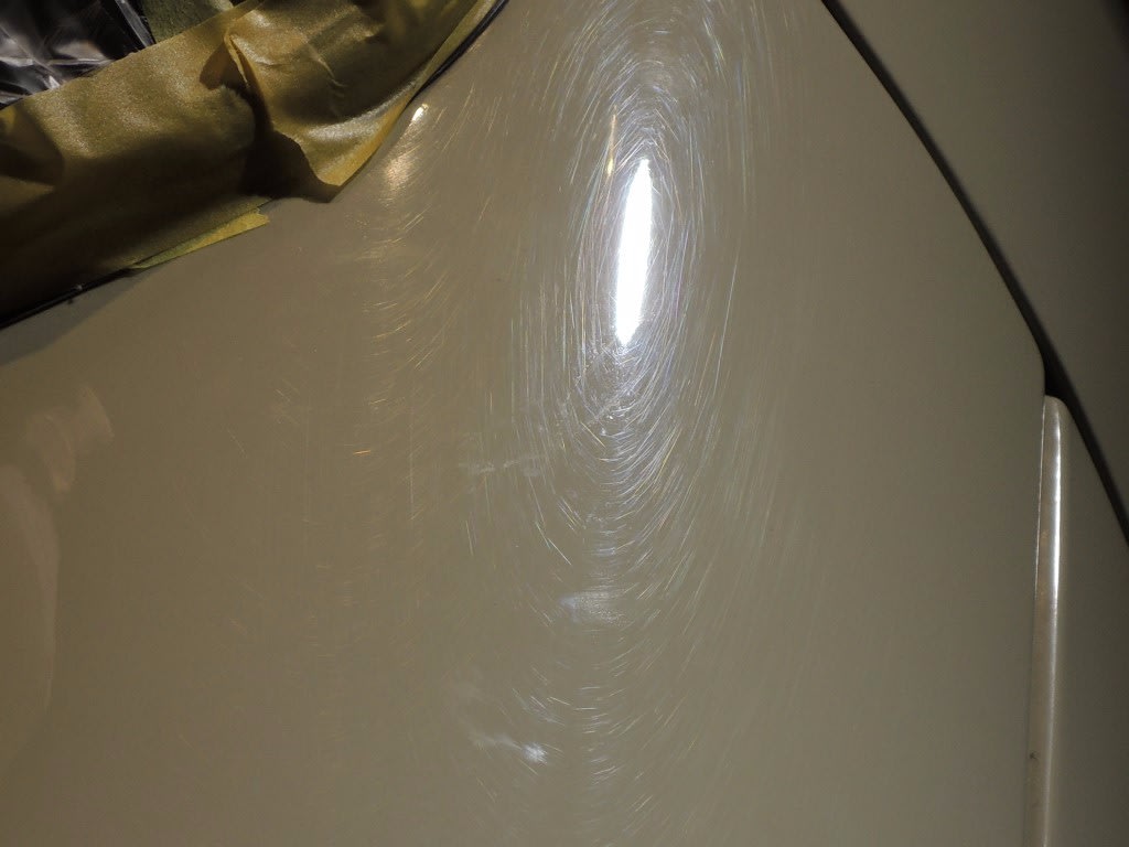 プレスラインや角などの弱い場所は研磨により塗装が薄くなる事と剥げてしまう場合があります。
