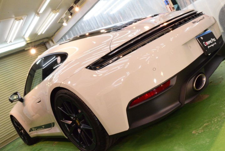 【札幌市清田区】ポルシェ・911(992)Carrera T|セラミックプロ9H&プロテクションフィルム施工|温度管理と下地処理の徹底で極艶仕上げ