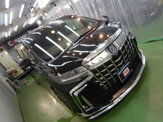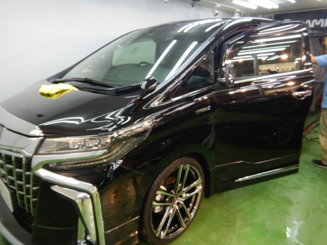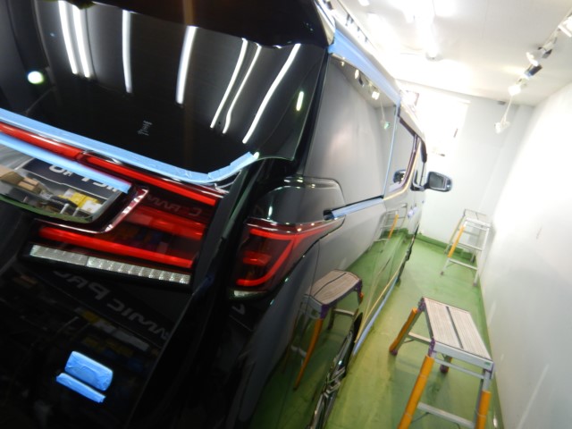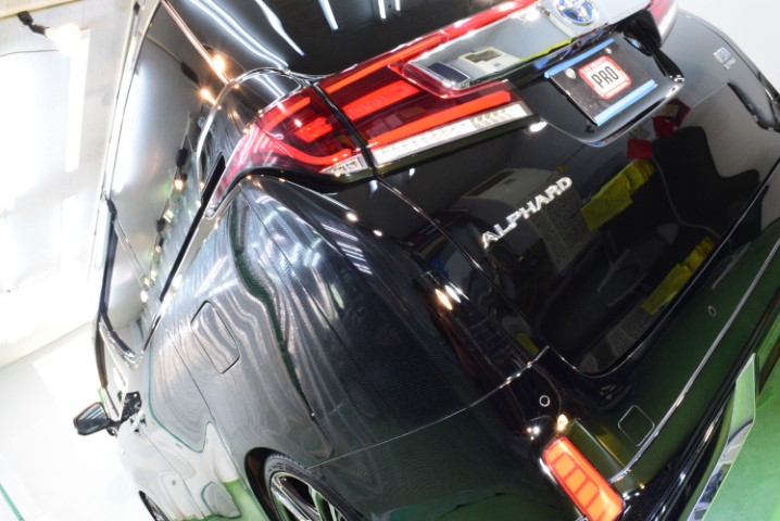 北広島市より|トヨタ・アルファード(202ブラック)徹底研磨&PCX-S8撥水ガラスコーティング施工