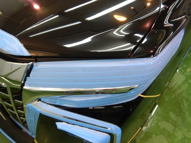 コーティング施工時、ボンネットやバンパーの処理中に誤ってヘッドライトのハードコートを磨いてしまわないよう、しっかり保護する必要があります。