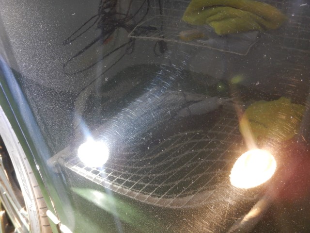 多くの場合、コーティング施工時にマスキングを怠り、ヘッドライトにバフが直接接触してハードコートを傷つけてしまったことが原因です。
