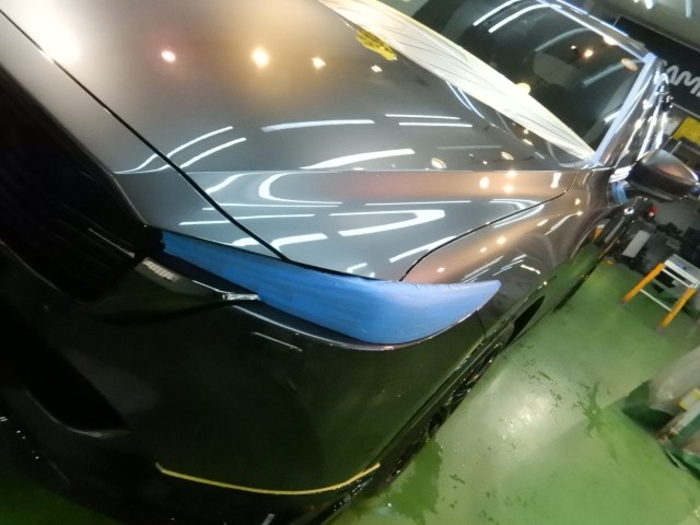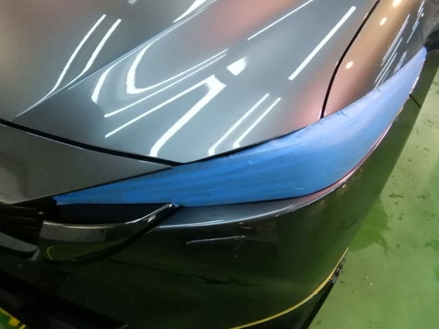 「しっかりとマスキングを行い、弱い部分を保護します。特にヘッドライトは重要です。」
