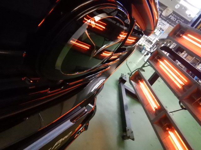 しかし、私たちカービューティープロ札幌ドーム前では、それに加え、施工後の不安定な被膜状態を安定させ、コーティングの強度を高めるために、カーボンヒーターによる焼付処理を必須工程としています。