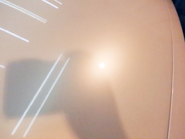 おそらく、コーティング作業時にマスキングをせず、バフがヘッドライトに当たってしまったのでしょう。