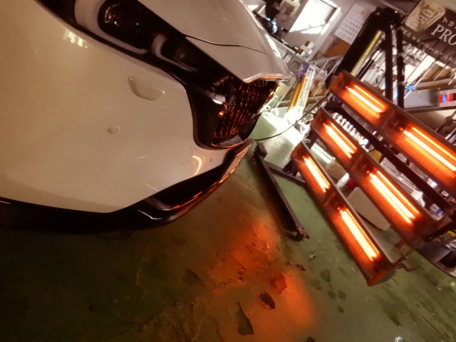 しかし、私たちカービューティープロ札幌ドーム前では、それに加え、施工後の不安定な被膜状態を安定させ、コーティングの強度を高めるために、カーボンヒーターによる焼付処理を必須工程としています。