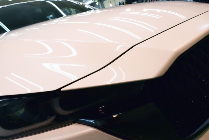 下地処理では塗装表面の微細なくすみを除去し、鏡面のような美しい状態へ仕上げました。