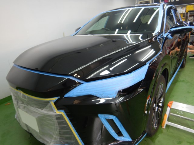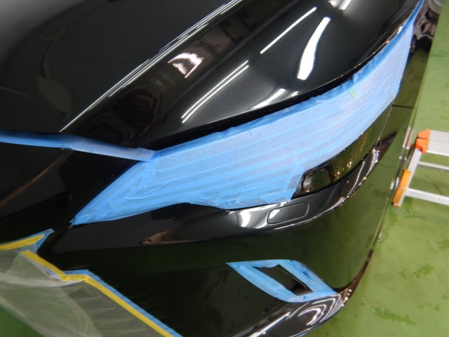 当店ではこの点を非常に重要視しており、施工前にヘッドライトをしっかりと保護・マスキングしたうえで作業に入ります。