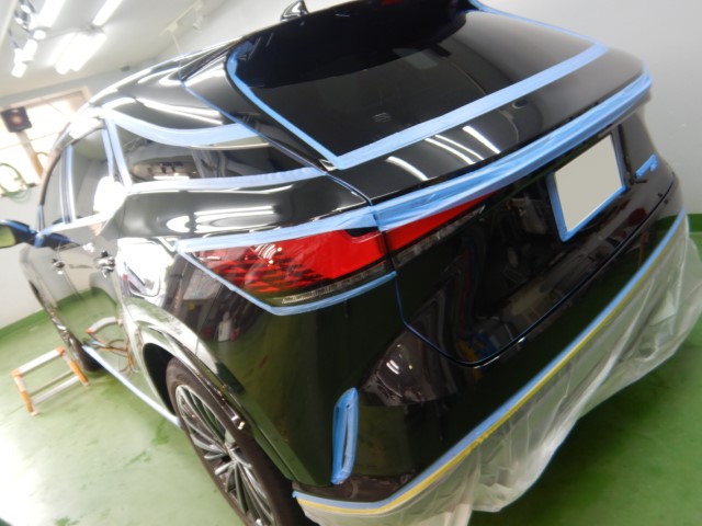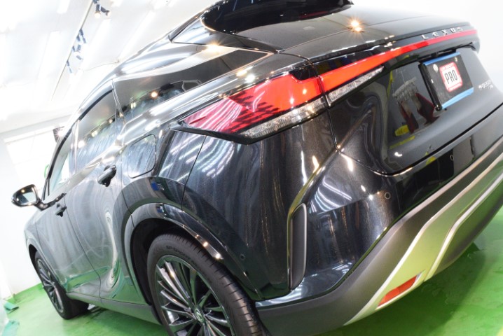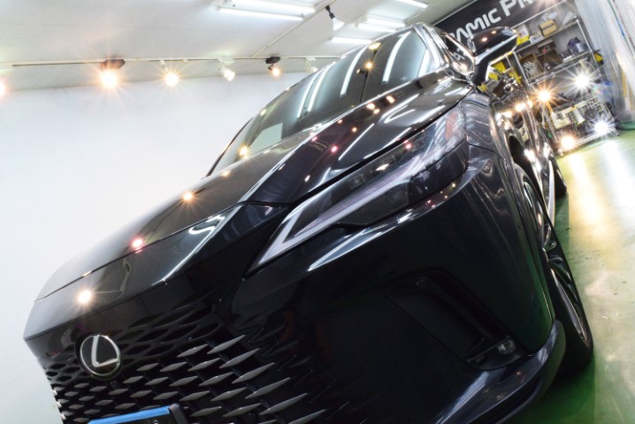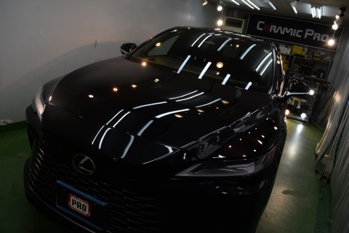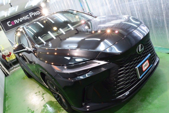 レクサスRXの艶やかな「グラファイトブラックガラスフレーク」が一層引き立ち、お客様にも大変ご満足いただけました。