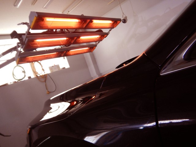 画像の様にカーボンヒーターによる熱入れは気温の低い北海道では当たり前の作業工程と考えます。いや出来ればコーティング施工時はどこの地域でも必ず行って欲しい作業です。実際にコーティング施工して塗っておしまい?いや心があれば疑問を抱き、施工したコーティングを良い状態で完成したいと考えるはずです。