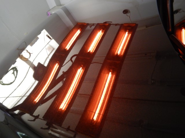 カーボンヒーター及び短・中・長波 遠赤外線ヒーターによる焼付処理