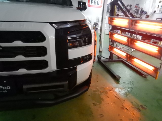 札幌市厚別区より|三菱・トライトンGLS|セラミックプロイオン2レイヤー+スモークフィルム施工|温度管理徹底&焼付処理で高耐久仕上げ