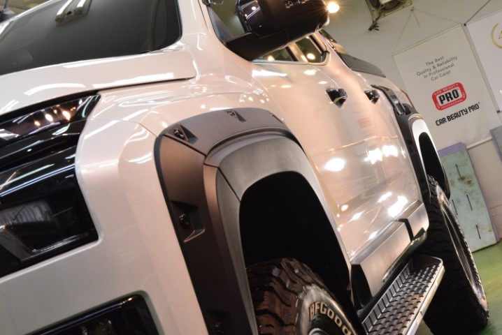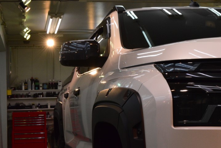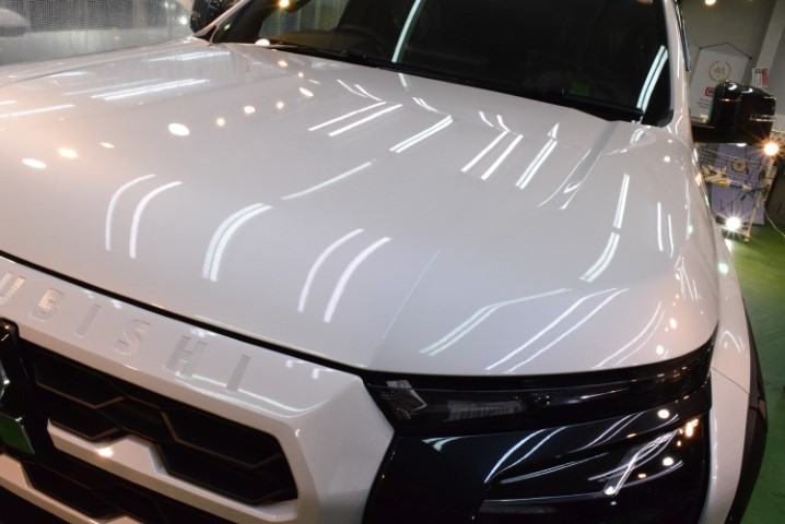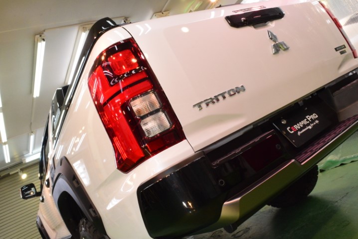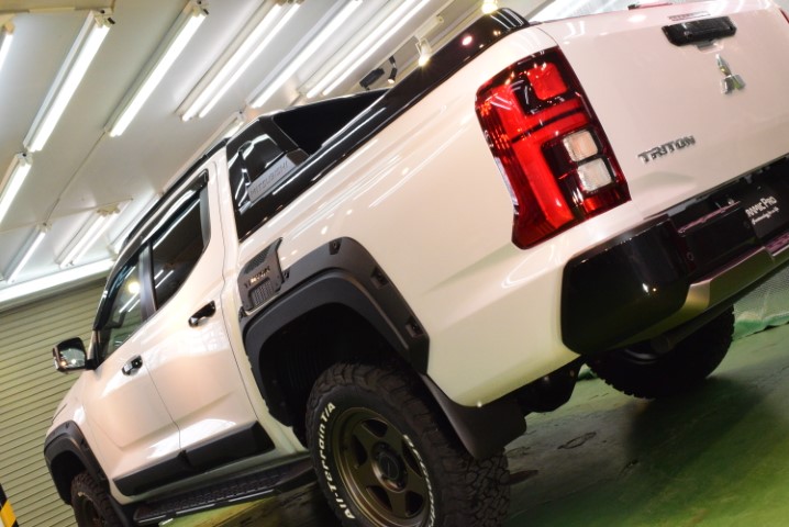 今回の施工では、トライトンという大型SUVにふさわしい“堅牢性と艶”を両立させることを目標に、