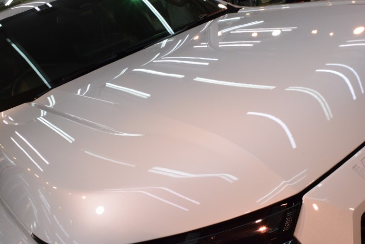 新車でも微細な塗装ゆらぎを整え、平滑なベースを形成。コーティング性能を最大限に引き出しました。