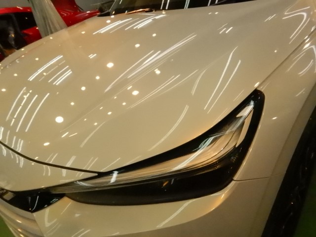 外光を取り入れた状態での撮影は、何もしていなくても艶があるように見えるため、コーティングや研磨の本当の仕上がりを判断するには不向きです。