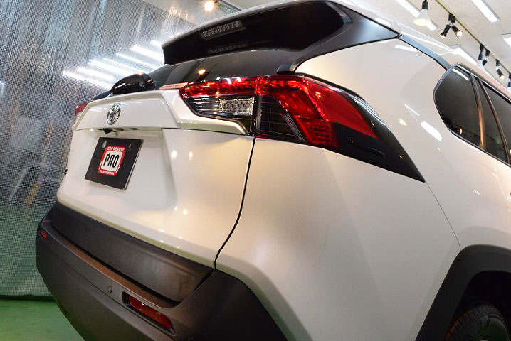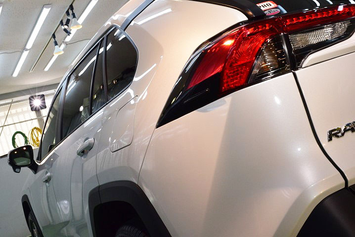 低撥水でありながら防汚性能に優れており、雨ジミや汚れの固着を軽減。さらに、濡れたように深みのある艶感を実現し、RAV4の存在感を一層際立たせます。