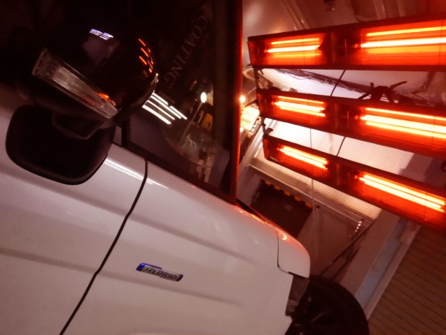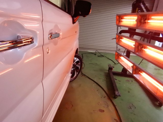 施工後はカーボンヒーターによる焼き付け処理を実施し、さらに施工後の環境温度を常温で8時間以上維持することで、厳冬期であっても十分に硬化させ、安心してご納車できる体制を整えております。