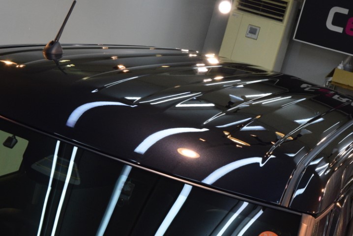 ルーフには鳥フン痕や微細な研磨痕がありましたが、まずは下地を丁寧に整え、パネル温度を一定(約25〜30℃)に保ちつつセラミック層を塗布。