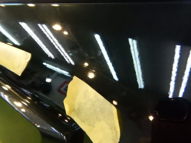 おそらく、コーティング作業時にマスキングをせず、バフがヘッドライトに当たってしまったのでしょう。