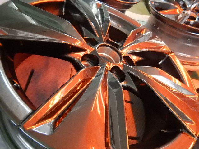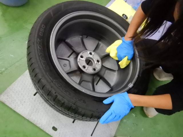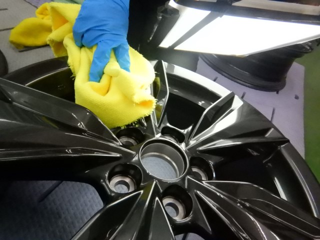 車体装着と同時にお持ち込みいただいた純正ホイールを裏面もコーティング施工済み。