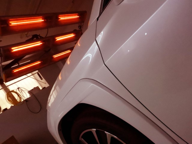 新車プレミアム研磨:油分やフィラーで“誤魔化す研磨”ではなく、光源管理のもと、塗装を正しく整える本質的な研磨処理。