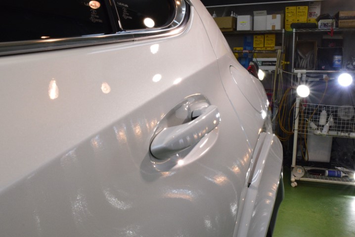 外光を入れて撮影するという事は、何も行っていなくとも車がきれいに写りますし、研磨のみの光沢とは決して言い難いためです。