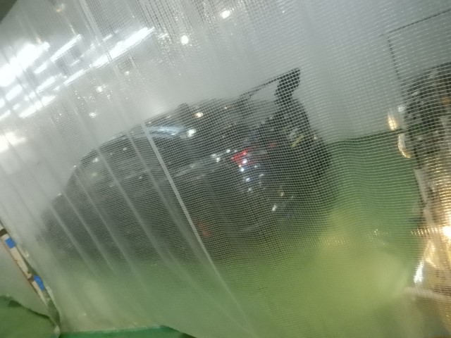 施工時は1台毎に間仕切を使う事でコンパウンド等の粉の被害や温度と湿度管理を適正にします。じつはこれ非常に大切な施工環境になりますので要チェックですよ。