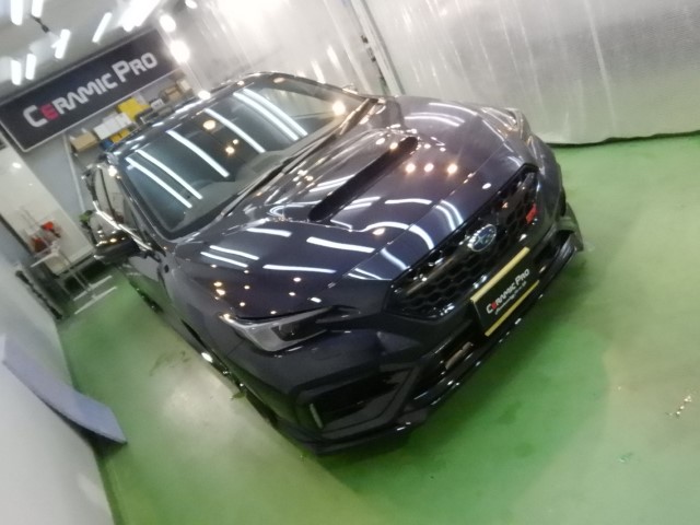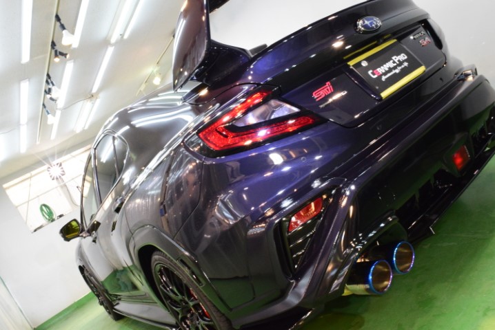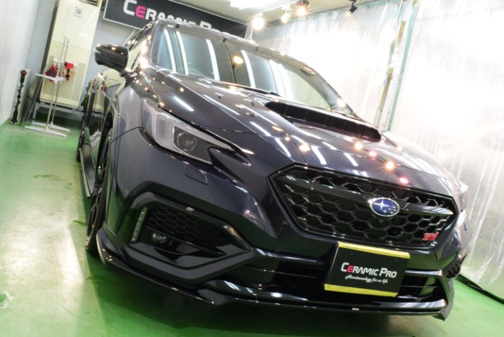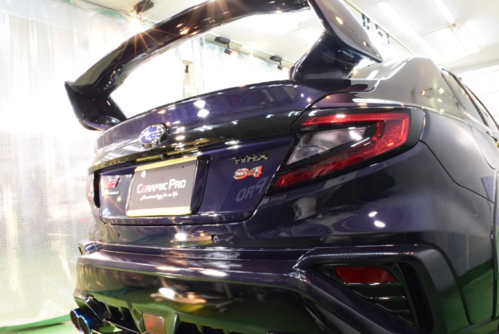 WRX S4の持つ重厚なボディラインとセラミックプロイオンの深い艶は相性抜群で、光の角度ごとに表情を変える存在感ある仕上がりとなりました。