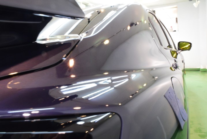新車でも微細な塗装ゆらぎを整え、平滑なベースを形成。コーティング性能を最大限に引き出しました。