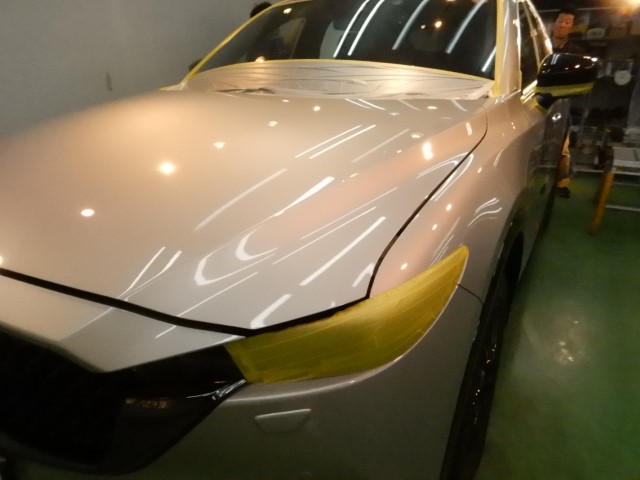 今回ご紹介する【マツダ・CX-5(クリスタルクォーツメタリック)】は、微細な水垢と油分の付着が見られたため、