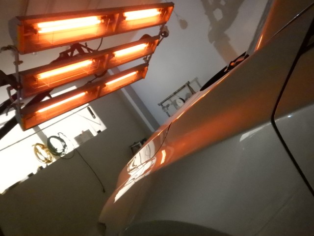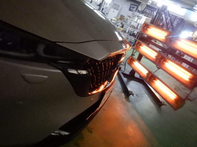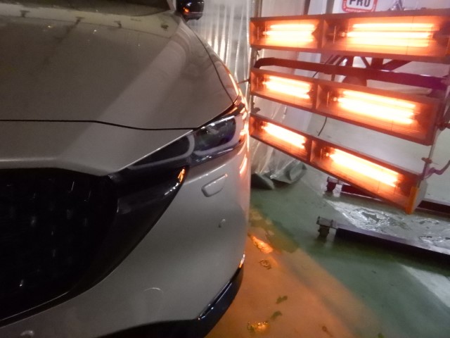 当店の温度・湿度管理ブースで下地処理からコーティングまで一貫施工し、カーボンヒーターによる焼付処理で確実な硬化を行いました。