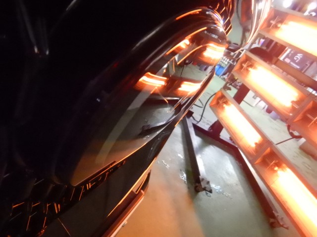 研磨作業を行う際には、塗装面の状態を正確に確認するための光源がとても重要です。そのため、写真では赤みが強く出ていることがありますが、これは色温度を調整して、より塗装の凹凸や傷を見えやすくしているためです。