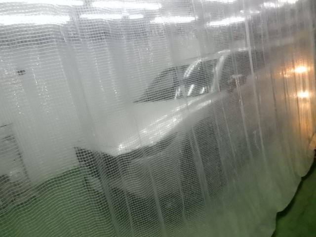 施工時は画像の様に1台毎に間仕切を使う事でコンパウンド等の粉の被害や温度湿度管理を適正にします。じつはこれ非常に大切な施工環境になりますので要チェックですよ。