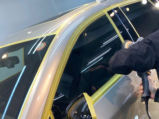 カービューティープロ札幌ドーム前では、塗装面の状態を画像で見て頂くため、外光を入れないで撮影します。研磨の際には外光を遮るのに撮影の際は外光を入れる。これ、別の目的になってしまします。