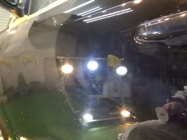 カービューティープロ札幌ドーム前では、塗装面の状態を画像で見て頂くため、外光を入れないで撮影します。研磨の際には外光を遮るのに撮影の際は外光を入れる。これ、別の目的になってしまします。