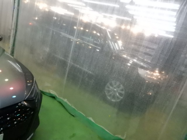 施工時は画像の様に1台毎に間仕切を使う事でコンパウンド等の粉の被害や温度湿度管理を適正にします。じつはこれ非常に大切な施工環境になりますので要チェックですよ。