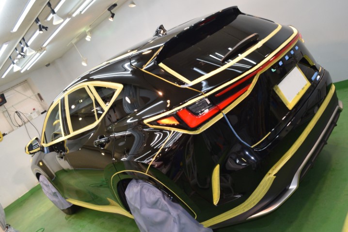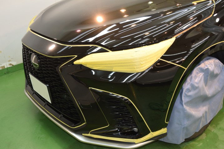 コーティングメンテナンス用ポリッシュとはいえ、しっかりとマスキングを行い弱い部分の保護