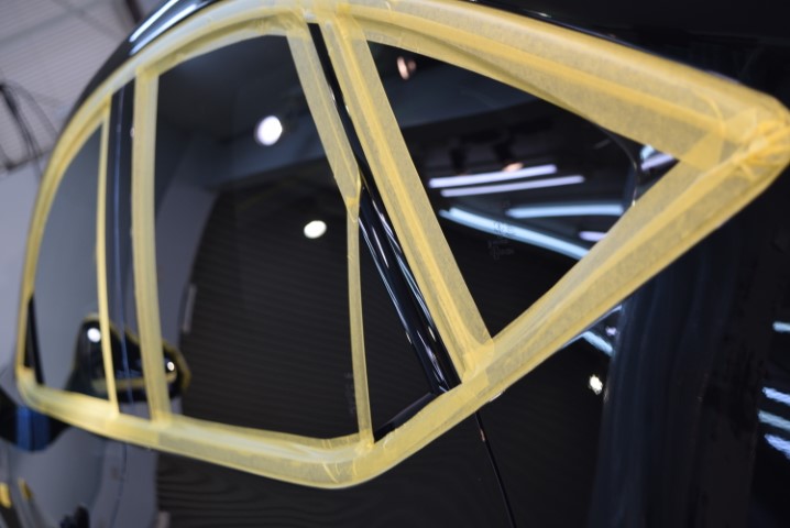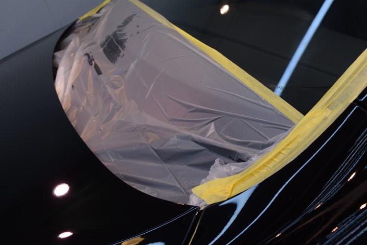 コーティング施行時においてはボンネットやバンパー処置中に誤ってヘッドライトのハードコートを磨かれてしまう事を防ぐために保護しておく必要があります。