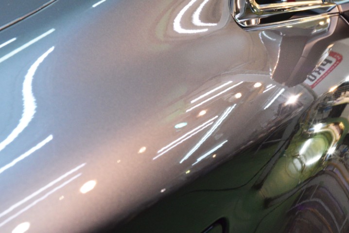 外光を取り入れた撮影は、実際の研磨品質以上に車両を美しく見せてしまうため、