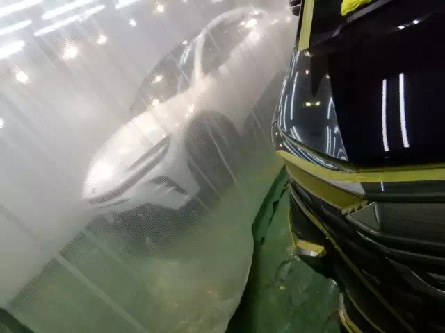 施工時は1台毎に間仕切を使う事でコンパウンド等の粉の被害や温度と湿度管理を適正にします。じつはこれ非常に大切な施工環境になりますので要チェックですよ。